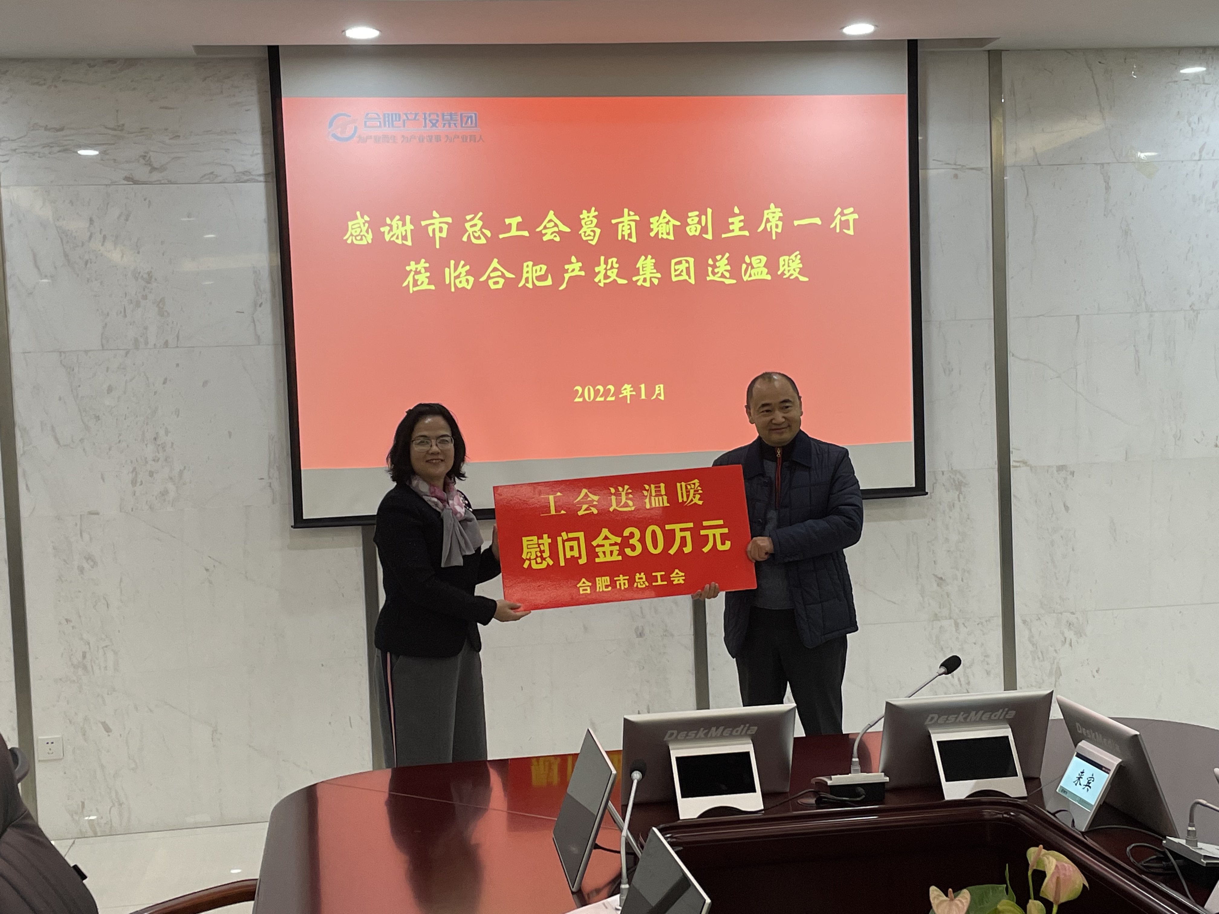 1月11日上午,合肥市总工会党组成员、副主席葛甫瑜一行,莅临合肥kaiyun开云官方开展2022年“两节”送温暖活动,为集团服务保障的523名改制企业困难职工送上慰问金30万元。集团党委副书记、董事张慧,工会副主席黄其兵出席活动。