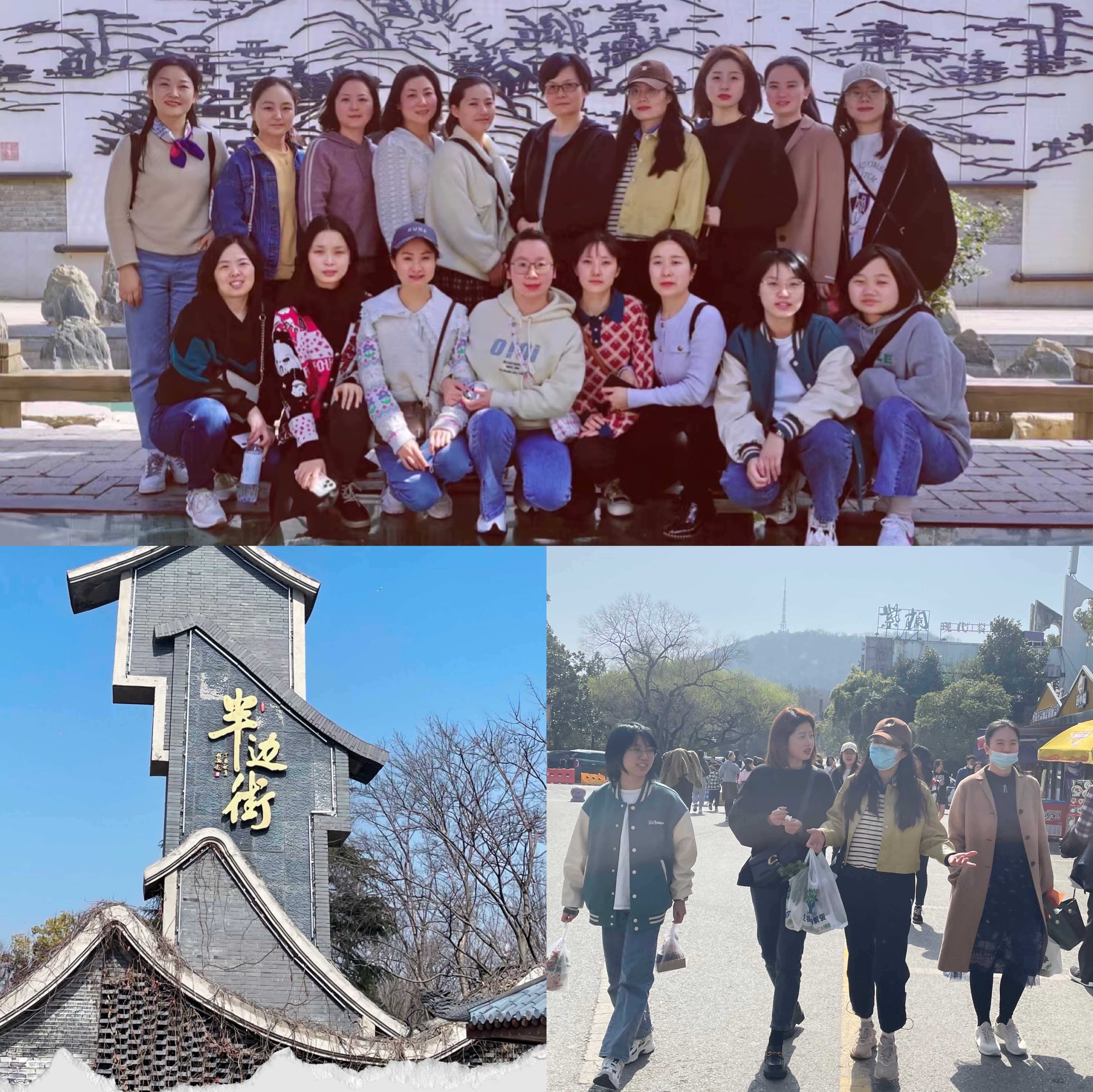 随后,女职工们来到了有着“大蜀山脚下世外桃源”之称的半天街。一边是灯火辉煌,一边是空山幽林;一边是人声鼎沸,一边是蝉鸣鸟声;一边是街,一边是景……可谓是“一城一山一天地,一户一亭一世界”。女职工们悠闲地逛着半边街,欣赏灰砖灰瓦点缀的江淮建筑风格,品尝各类美味小食,感受合肥的文化底蕴和大蜀山风情,在这街区来了一场春日的心灵之旅。