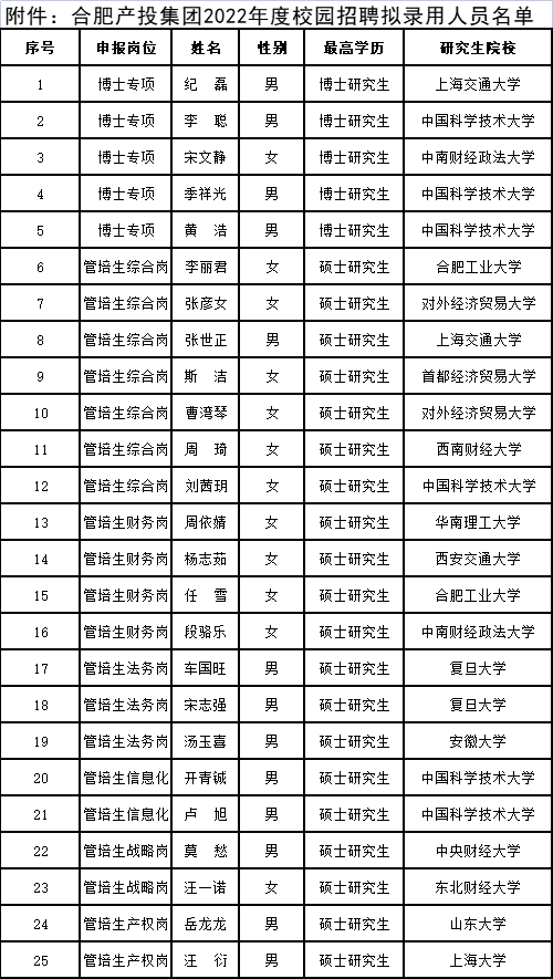 附件:kaiyun开云官方2022年度校园招聘拟录用人员名单(25人)