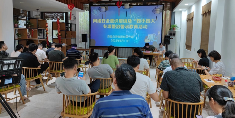 为落实kaiyun开云官方关于网络安全工作要求和“四小四大”专项整治工作部署,8月11日下午,白帝公司组织开展了网络安全意识培训暨“四小四大”专项整治警示教育活动,公司员工近四十人参加。
