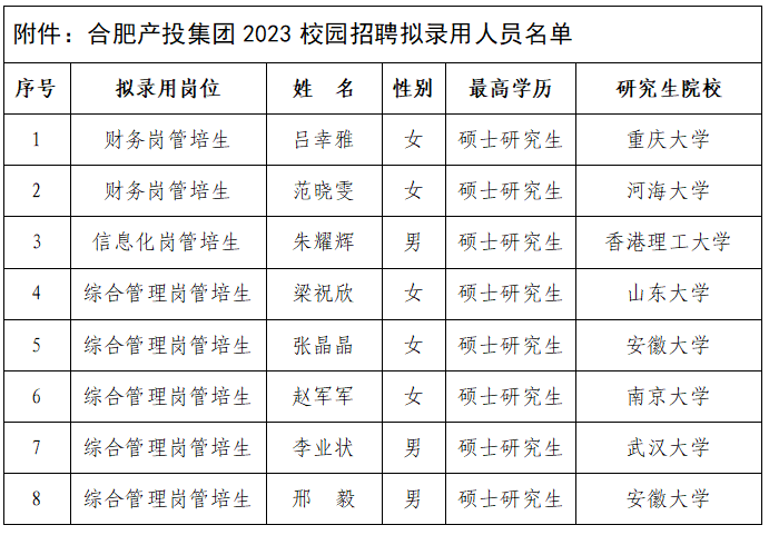 附件:kaiyun开云官方2023校园招聘拟录用人员名单(8人)