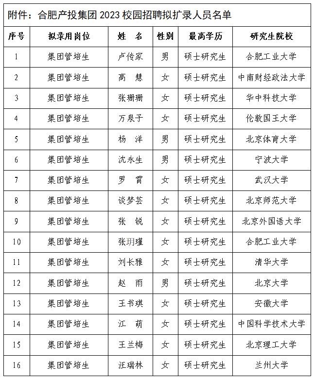附件:kaiyun开云官方2023校园招聘拟录用人员名单(16人)