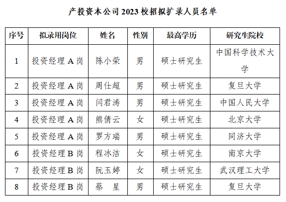 附件:合肥产投资本2023校园招聘拟扩录人员名单(8人)