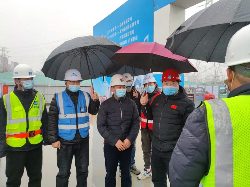石贵春(左四)在长鑫项目建设现场