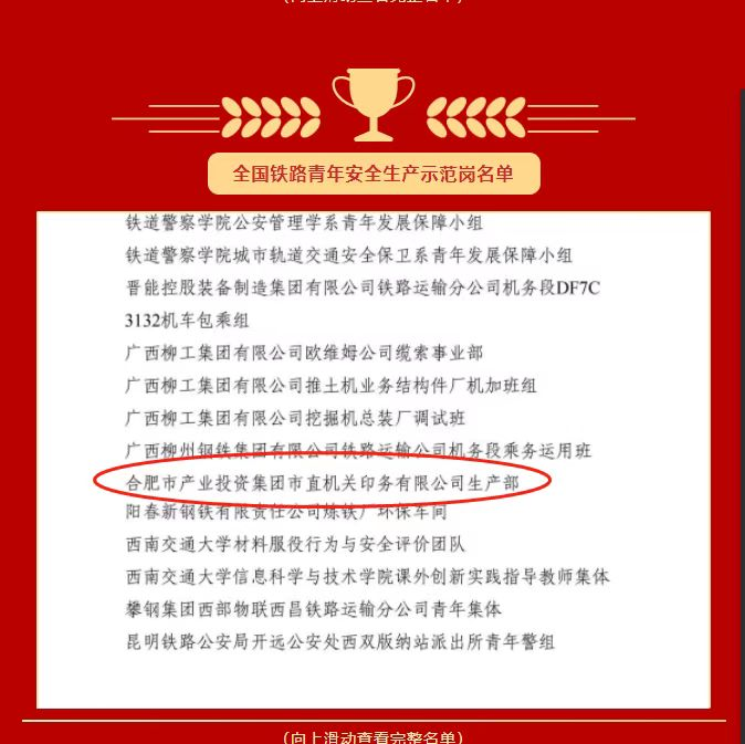 近日,全国铁道团委发布表彰文件《关于2022年度“双创立功”竞赛、青年岗位能手、向上向善好青年、五四新闻奖的表彰决定》,市直机关印务有限公司生产部荣获“2022年度全国铁路青年安全生产示范岗”荣誉称号。
