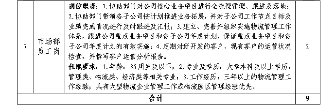 为满足合肥物流集团快速发展及人才队伍建设需要,面向社会公开招聘9名工作人员。现就有关事项公告如下:
