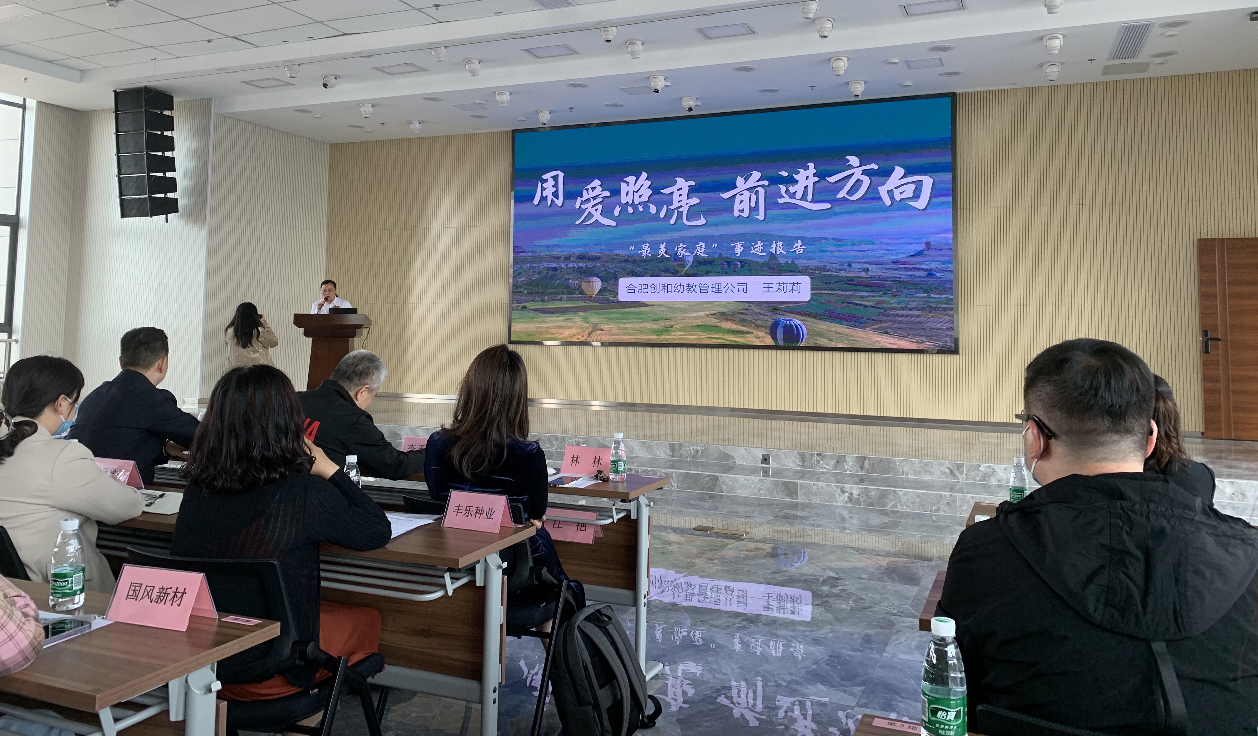 5月12日下午,合肥市国资委举办的第四届“最美家庭”事迹报告会暨家庭教育专题讲座在丰乐种业技术中心举行。市国资委四级调研员、组织宣教处处长尹玲宣读《关于市国资委系统第四届“最美家庭”的通报》,创和幼教管理公司王莉莉获评“最美家庭”荣誉称号。