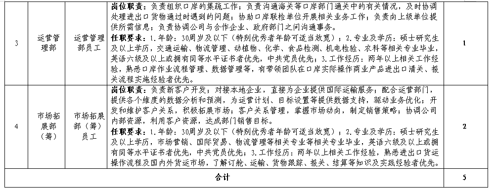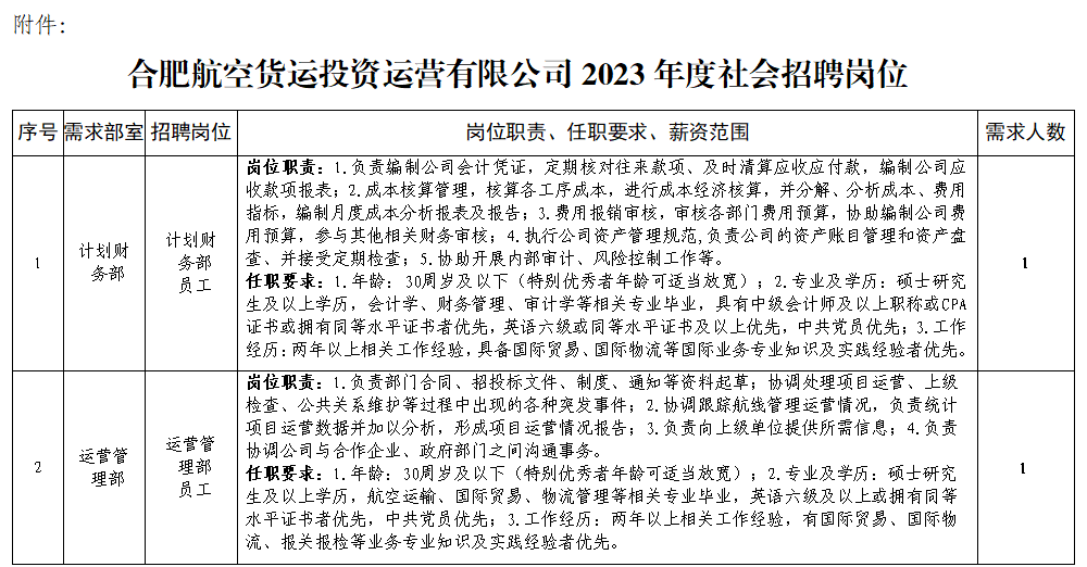 为满足公司快速发展需要,选拔优秀人才、完善人才队伍建设,根据合肥航投公司发展需要,现面向社会公开招聘5名工作人员。具体招聘事项公告如下: