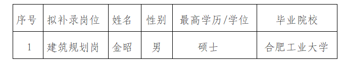 2023年建筑规划岗校园招聘拟补录人员公示名单