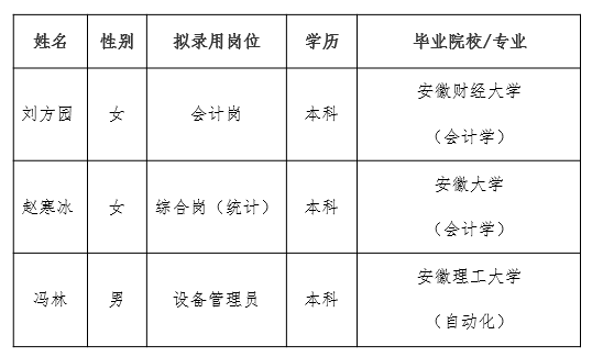 根据《合肥市地方铁路投资建设有限公司2023年社会招聘公告》,经研究决定,现将拟录用人员名单进行公示: