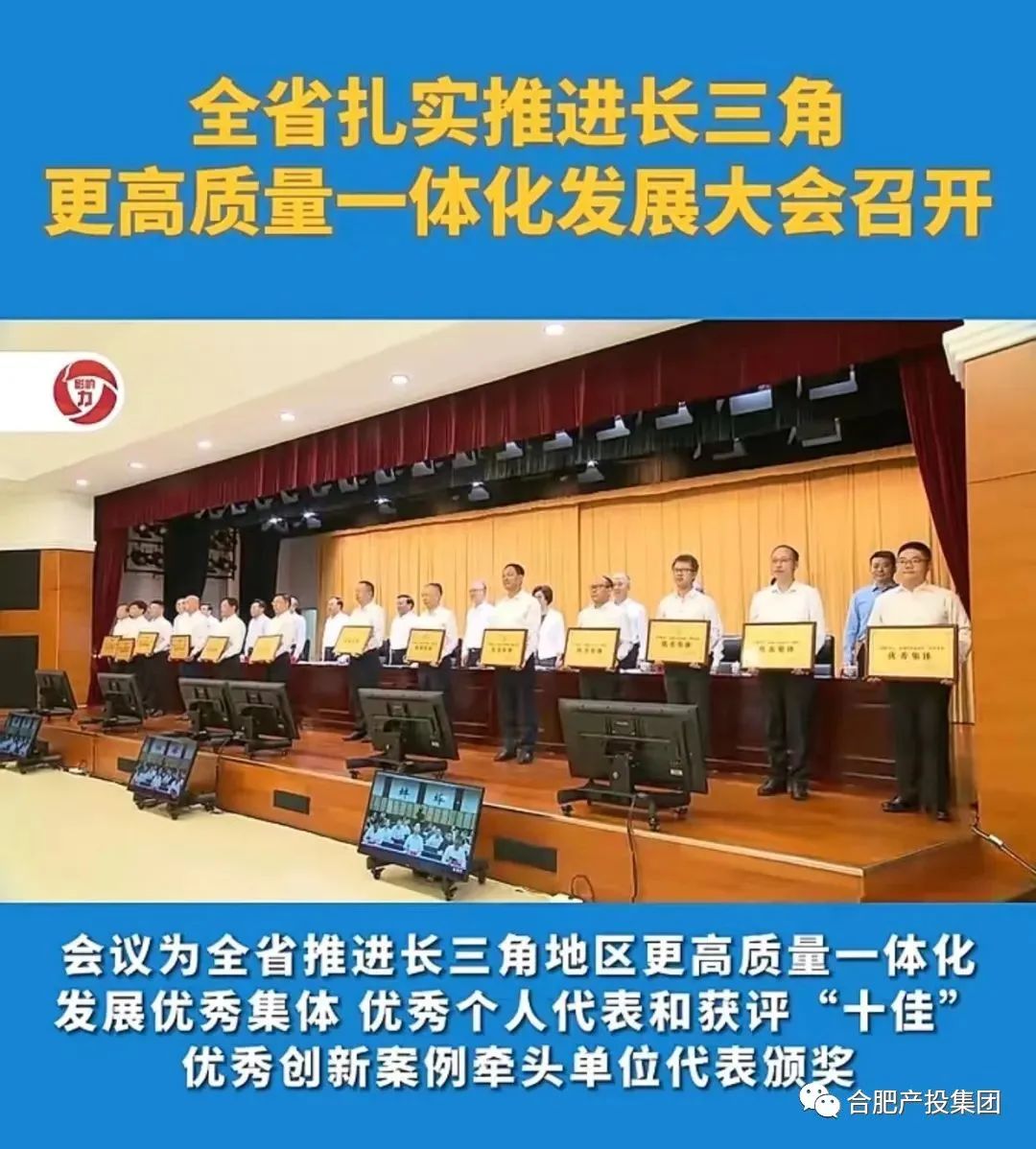 8月20日上午,全省扎实推进长三角更高质量一体化发展大会在合肥召开。会议为全省推进长三角地区更高质量一体化发展优秀集体、优秀个人代表和获评“十佳”优秀创新案例牵头单位代表颁奖。kaiyun开云官方入选全省推进长三角地区更高质量一体化发展优秀集体并作为代表上台领奖,集团已投企业安徽华晟新能源科技有限公司,视涯科技股份有限公司,金固阿凡达低碳车轮(合肥)有限公司,零重力飞机工业(合肥)有限公司等入选全省推进长三角地区更高质量一体化发展优秀集体。