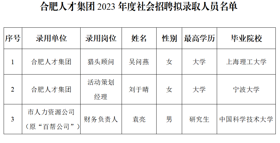 附件:合肥人才集团2023年度社会招聘拟录取人员名单(3人)