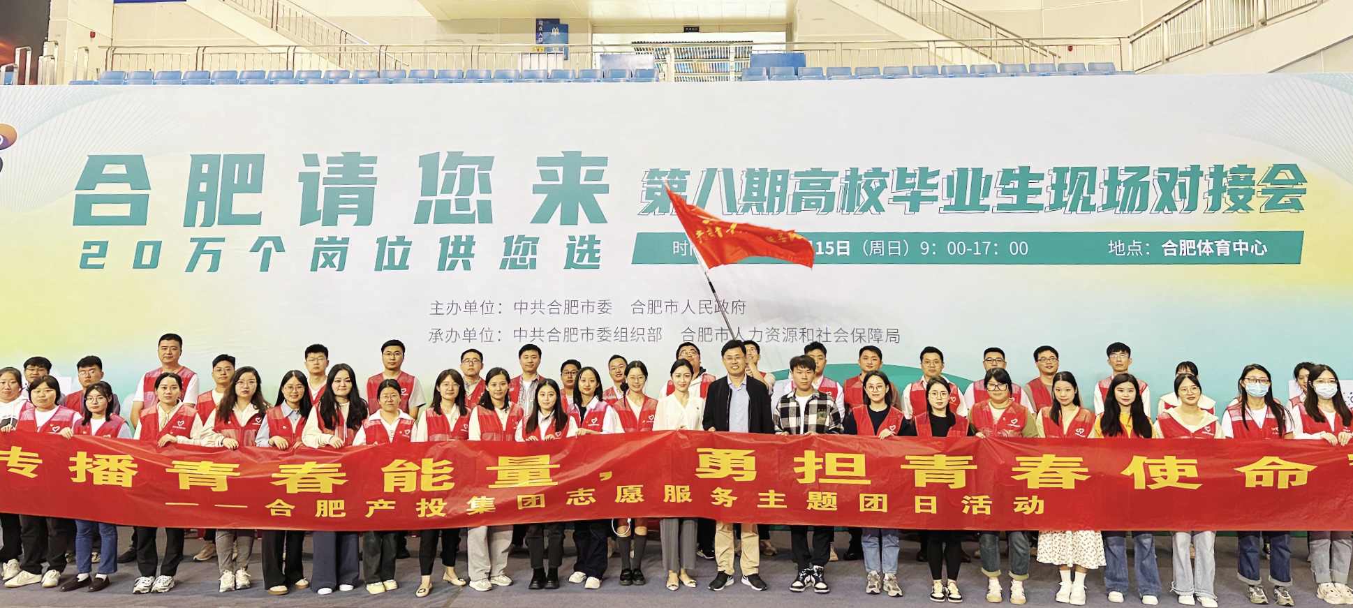 10月15日,“合肥请您来,20万个岗位供您选”活动第八期高校毕业生现场对接会在合肥市体育中心成功举行。kaiyun开云官方积极号召、精心组织、周密部署,号召15个基层团组织,组织60余名产投青年成立产投志愿服务队,开展集团专场“传播青春能量 勇担青春使命”志愿服务主题团日活动,为高校毕业生求职者保驾护航,充分发挥国企担当。