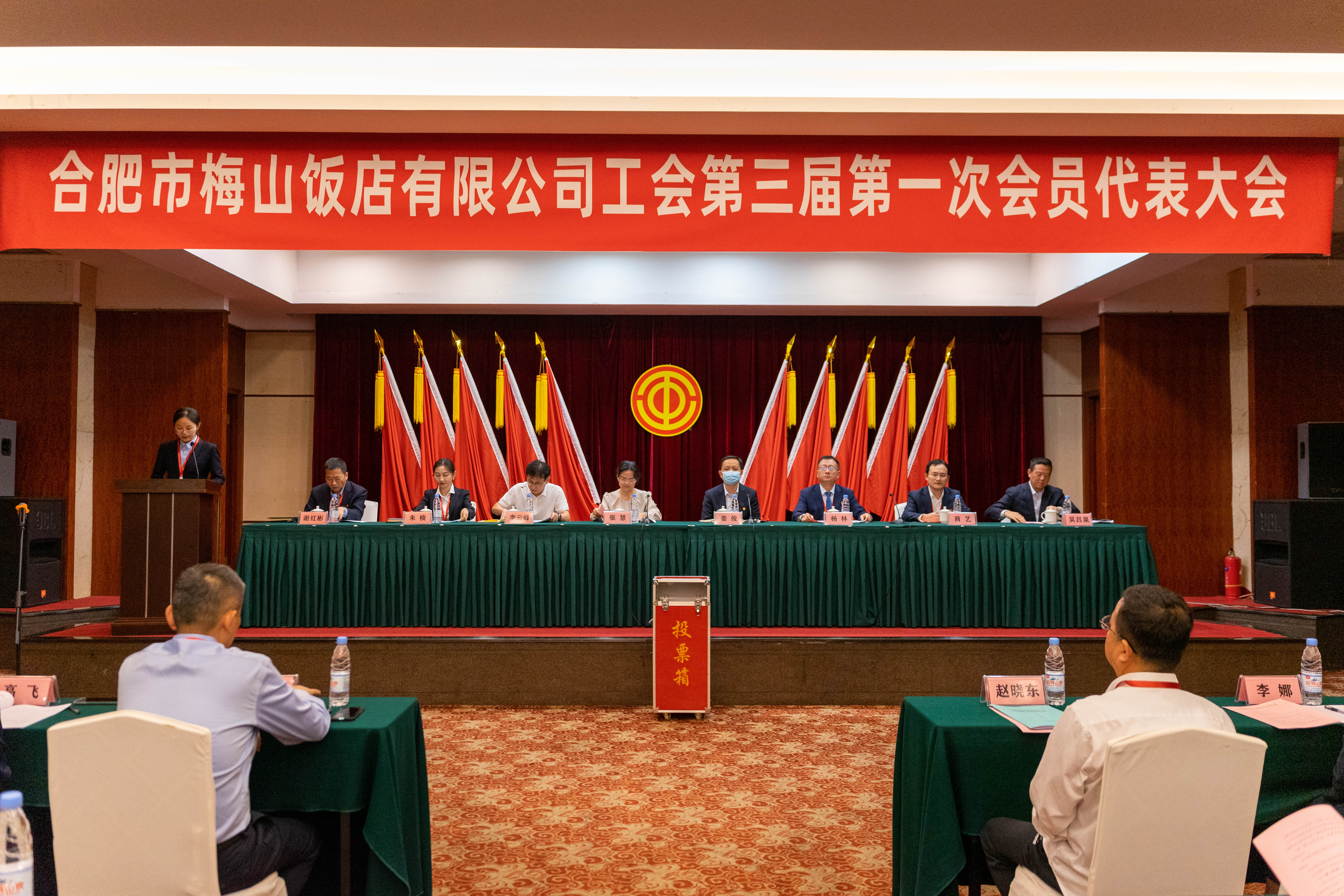 梅山饭店党支部副书记、常务副总经理朱楠作为新一届工会主席作表态发言。她表示新一届工会将在梅山饭店党支部的坚强领导下,突出组织建设,努力打造一支忠诚党的事业、竭诚服务职工的工会组织队伍。突出服务效能,实现企业发展和员工权益保障“双赢”。突出融合提升,结合梅山特色,让“尊重劳动”成为梅山发展的最强音。突出忠诚履职,严格按照廉洁自律的规定和要求,不断增强职工的幸福感、归属感、自豪感。