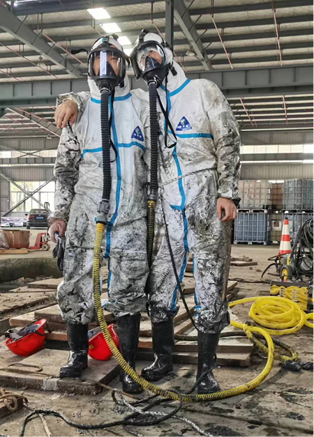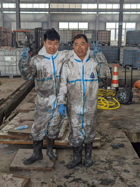 唯其艰难,才更显勇毅;唯其笃行,才弥足珍贵。每一次外出技术服务,都是一次对专业能力的考验。面对陌生、危险的作业环境,每次进场服务前,他们全面仔细地对现场进行安全评估,制定科学合理的服务方案,用专业、严谨、高效、热情的服务态度,收获了客户一次次的好评,用敬业、担当、务实、创新的工作作风,一次次擦亮“浩悦品牌”。每一次外出技术服务,都是一场敢于冒险的极限挑战。除了身心上的疲惫,艰苦恶劣的作业环境更让人刻骨铭心。外出技术服务中有一项“硬骨头”工作是到客户单位清理污水池,作业环境非常恶劣,机械设备无法工作,必须采用人工作业的方式才能完成清理任务。“请公司放心,我们保证完成任务!”这支由一群年轻的“浩悦人”组成的“先锋队”,临危不乱,主动请缨,愿脱下孔乙己的长衫,换上闷热的防护服,用一锨一铲传承着不怕苦、不怕累的劳模精神。目前,这支新组建的队伍已完成各类外出技术服务30余次,累计清理、收运各类危险废物500余吨。