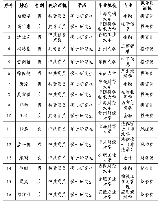 附件:合肥市创新科技风险投资有限公司2024校园招聘拟录用人员名单