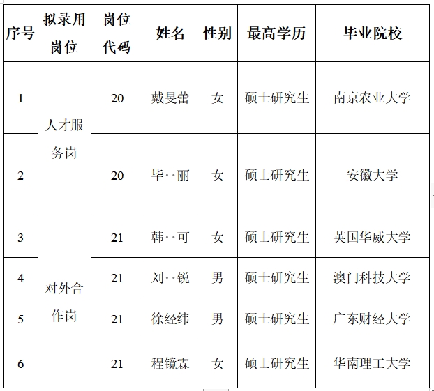 附件1:合肥市人才发展集团有限公司2024校园招聘拟录用人员名单(6人)