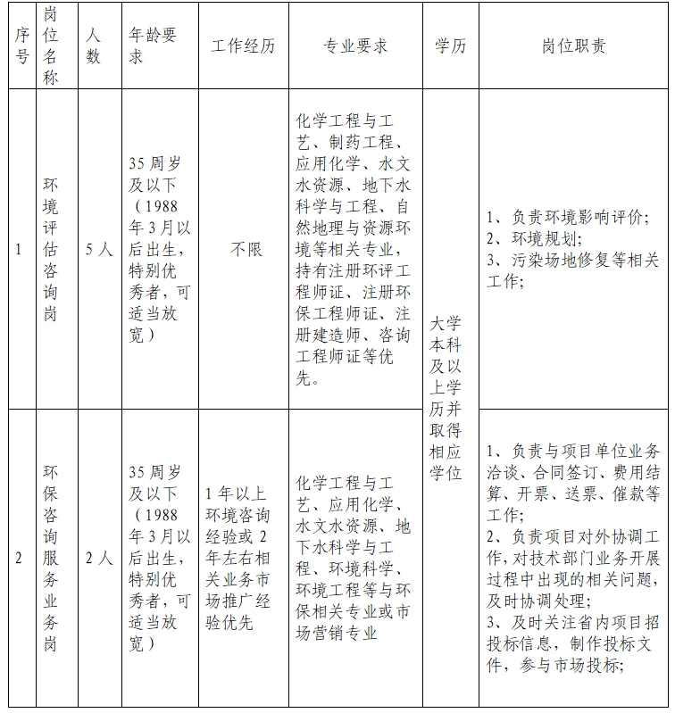 安徽浩悦环境科技股份有限公司子公司合肥市斯康环境科技咨询有限公司(以下简称斯康环境公司)下设市场开发部、技术咨询部(分三个部门)、综合管理部、计划财务部,公司经过多年的发展,已打造了一支优秀的专业技术团队。2023年,在岗职工共计31人,其中副高级职称6人,中级职称1人,环评工程师7人。公司自成立以来,累计完成5000余项环境咨询业务,是安徽省知名的优秀环境咨询服务机构,在历年省环保厅和地方环保局组织的各项检查和考核中均名列前茅。为规范有序做好2024年度招聘工作,现将有关事项公告如下: