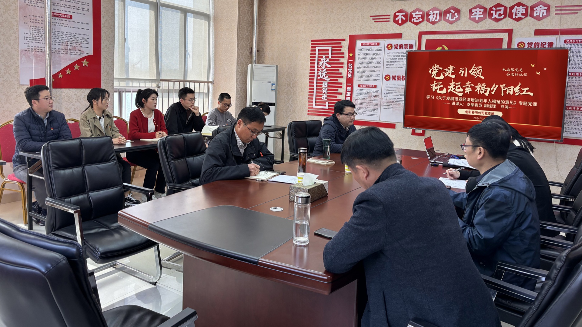 3月22日上午,创和养老公司党支部开展2024年第一季度党课,支部委员、副经理芦涛结合公司工作实际,围绕“党建引领 托起幸福夕阳红”主题,为支部党员讲授专题党课。