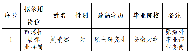 公示期间,如对拟录用人员有异议,请以书面形式向合肥国际内陆港发展有限公司提出。