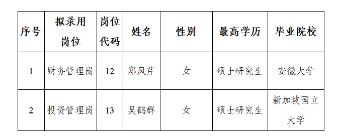 附件:合肥市科创集团有限公司2024校园招聘拟递补录用人员名单(2人)