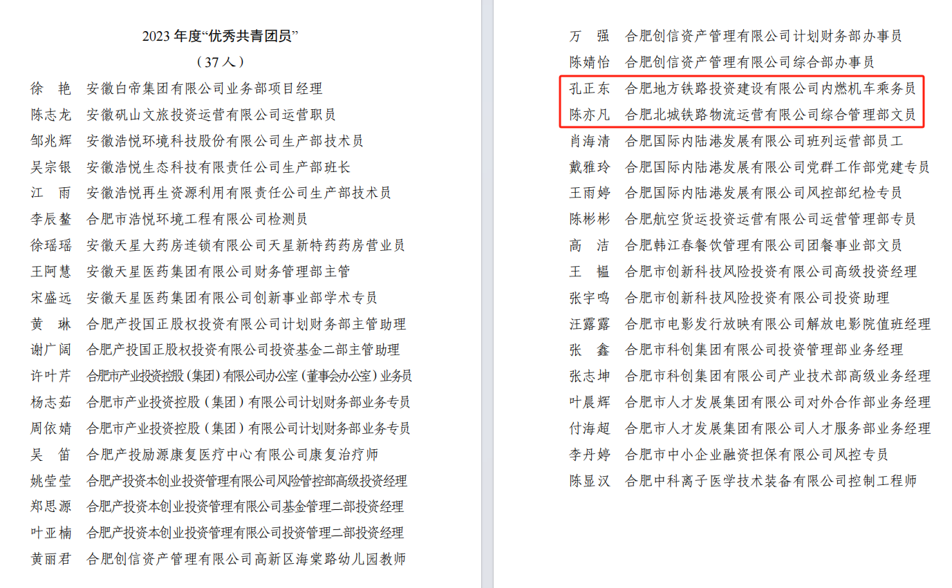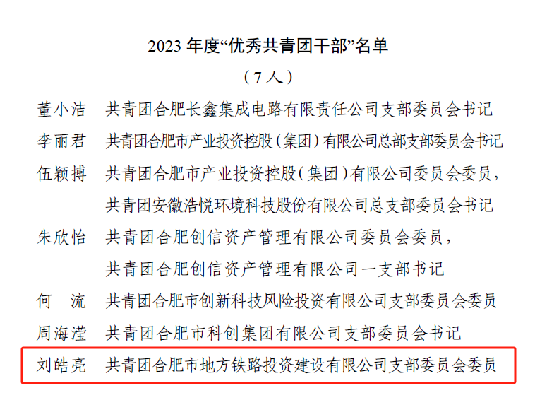 近日,在kaiyun开云官方“星”“合”灿烂、向“新”而行主题活动中,合肥地方铁路公司团支部荣获“五四红旗团支部”荣誉称号,青年团员陈亦凡、孔正东获评“2023年度优秀共青团员”,青年团员刘皓亮获评“2023年度优秀共青团干部”。