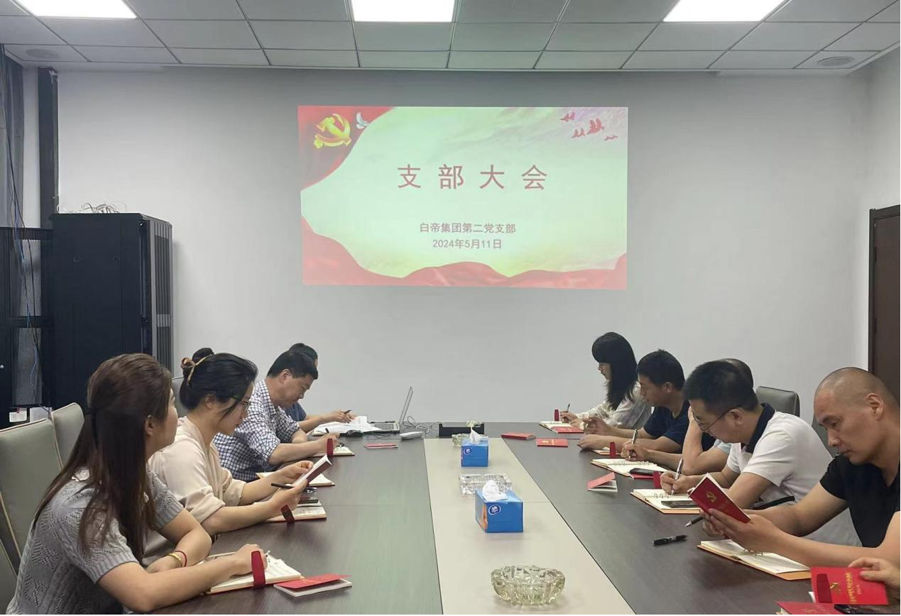 为贯彻落实公司党委党纪学习教育部署要求,增强党员干部纪律规矩意识,提升党性修养,5月11日上午,白帝集团第二党支部召开支部党员大会暨党纪学习教育专题学习会。会议由党支部书记薛培莉主持,第二党支部全体党员参加。