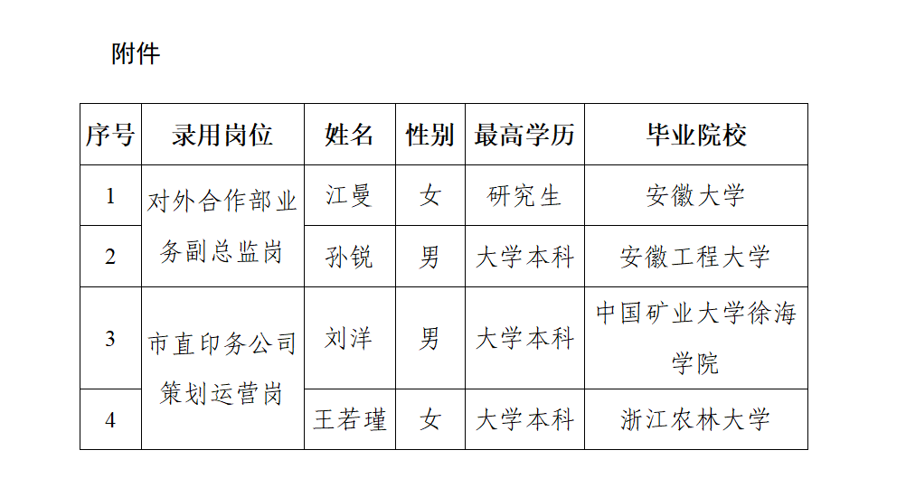 附件:合肥人才集团2024年度部分岗位社会招聘拟录取人员名单(4人)