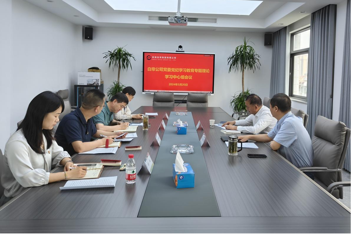 为深入学习贯彻新修订的《中国共产党纪律处分条例》,切实落实落细kaiyun开云官方党委党纪学习教育部署要求,5月20日下午,安徽白帝集团党委召开党纪学习教育专题理论学习中心组学习会议,kaiyun开云官方党委委员、纪委书记、监察专员、监事会主席江雪到会指导。kaiyun开云官方党委委员、副总经理,白帝公司党委书记、董事长罗志明主持会议,白帝党委班子成员全体参加。