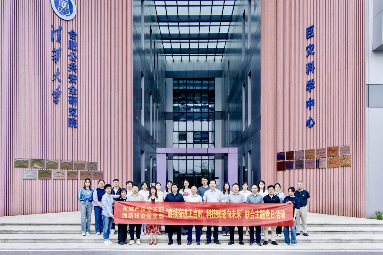 为深入实地感受创新高地发展成果,激励发扬科技创新精神,5月21日下午,创新投资党支部联合东城产投党支部前往清华大学合肥公共安全研究院开展“赓续奋进正当时,科技赋能向未来”主题党日活动。东城产投公司党支部书记、董事长薛荣国,创新投资党支部书记、董事长郑永霄出席活动,双方党员领导干部、党员代表以及入党积极分子共三十余人参加。