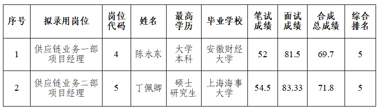 根据《安徽白帝集团有限公司2024年度社会招聘公告》规定,经研究决定,现将拟递补录用人员名单进行公示,公示时间从5月22日至5月28日。