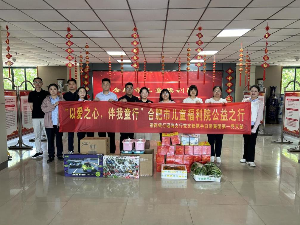 在“六一”儿童节即将到来之际,5月29日上午,白帝集团第一党支部联合徽商银行瑶海支行党支部联合开展了“以爱之心,伴我童行”合肥市儿童福利院公益之行。