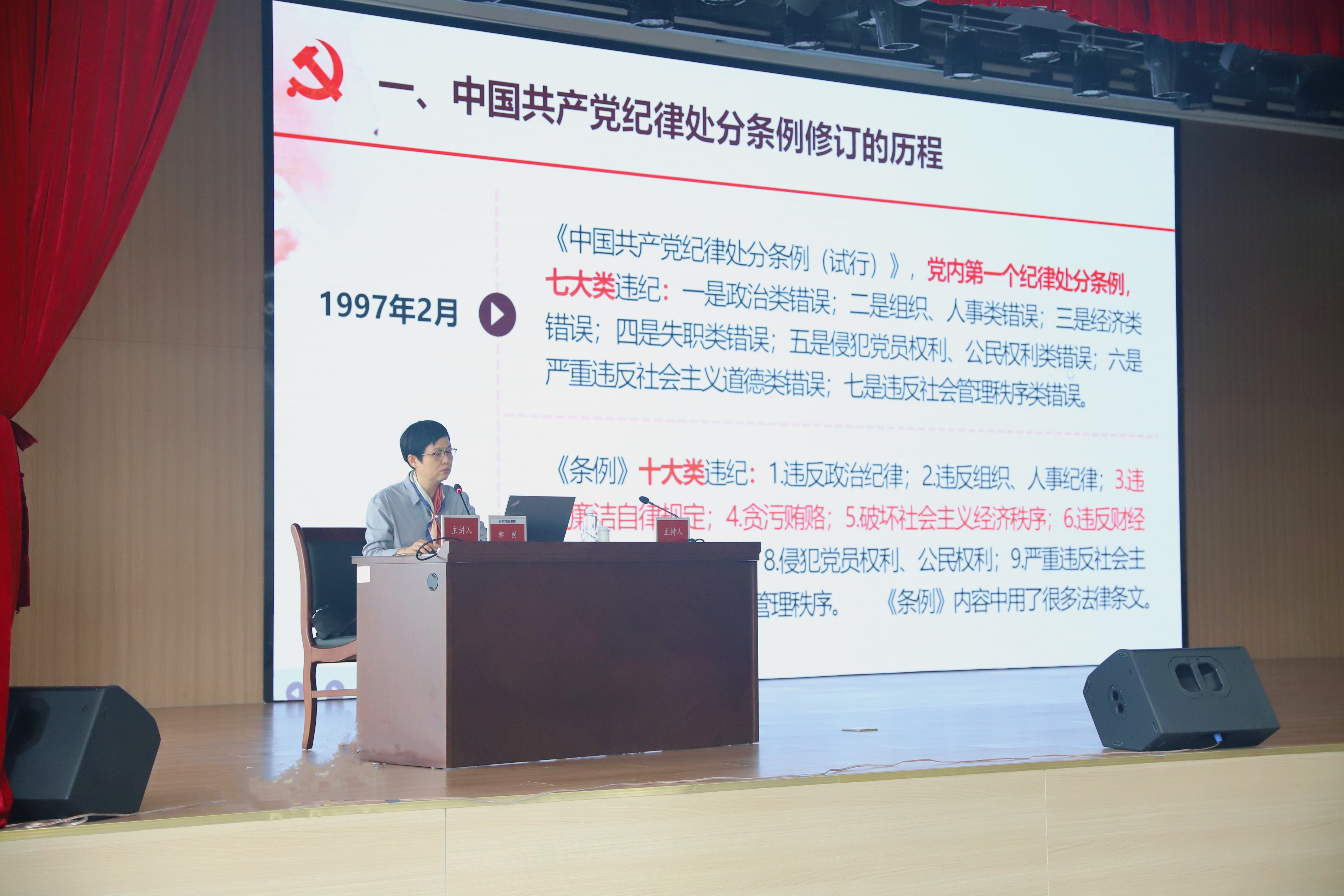 会上,郭囡围绕《中国共产党纪律处分条例》的修订历程、修订意义、鲜明特点、主要内容、延伸解读和贯彻执行等六个方面,结合具体案例,系统全面、深入浅出地进行了专业解读和详细阐释,观点鲜明、内涵深刻、讲解透彻,既有历史深度、又有理论高度、更有实践厚度,号召党员干部要强化纪律意识、规矩意识,提高廉洁自律能力,严格执行和维护党的纪律,做政治上的明白人,法纪上的清醒人,作风上的实在人,对在场党员干部深入学习、准确理解、严格遵守《条例》具有启迪和帮助作用,为参学人员讲授了一堂深刻的党风廉政教育课。