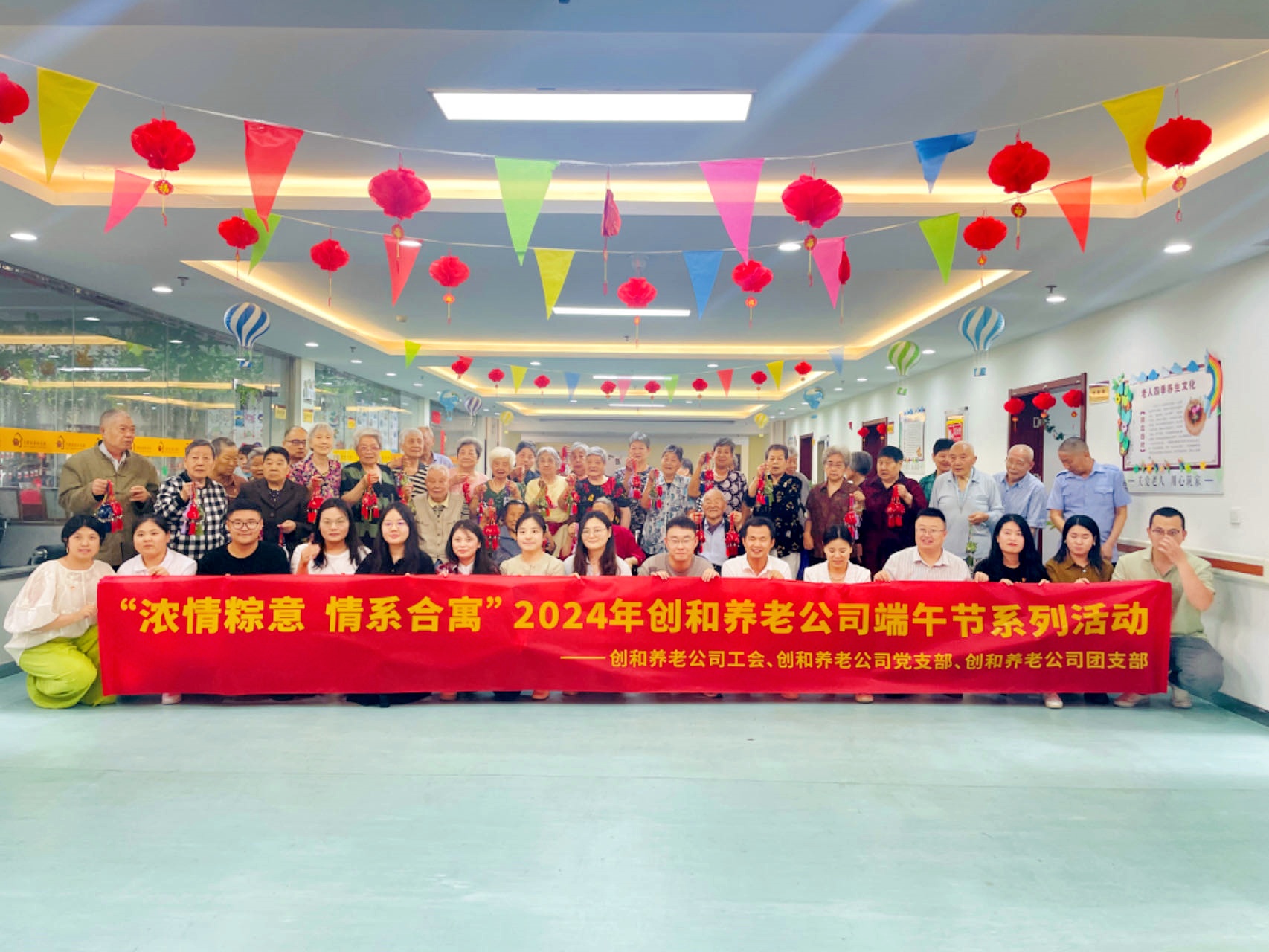 仲夏时节,粽叶飘香。五月五,又是一年端午节到来。为弘扬端午爱国爱民爱家文化,传承中华民族美德,产投康养集团公司工会与党支部、团支部、合肥市老年公寓工作人员联合组织开展“浓情粽意 情系合寓”端午节系列活动。公司全体职工、合肥市老年公寓全体长者共同参与活动。