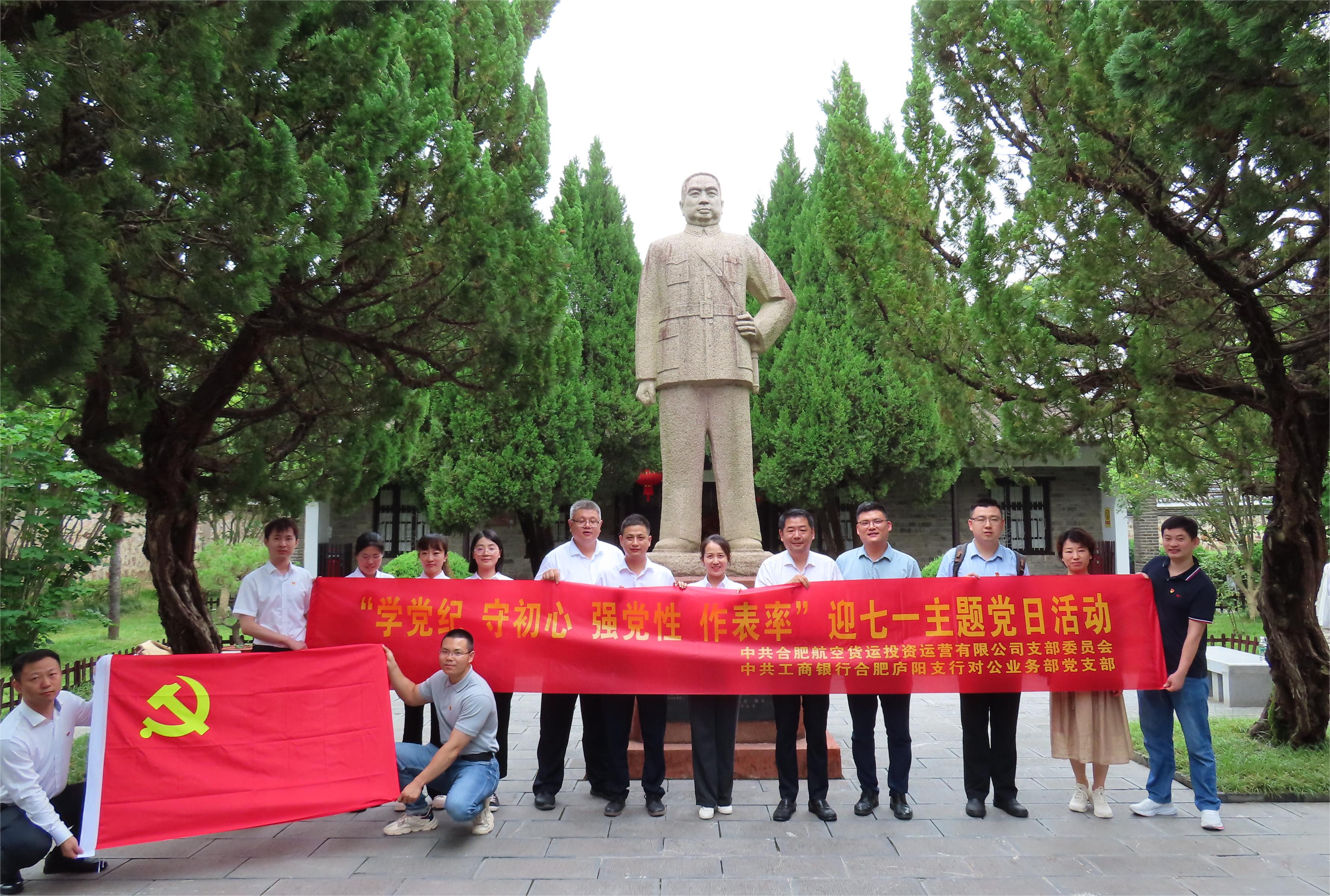 为进一步深化交流合作,积极探索联合共建新模式,推动党建业务融合发展,6月27日,航投公司党支部与工商银行合肥庐阳支行对公业务部党支部赴冯玉祥故居联合开展迎七一主题党日活动。