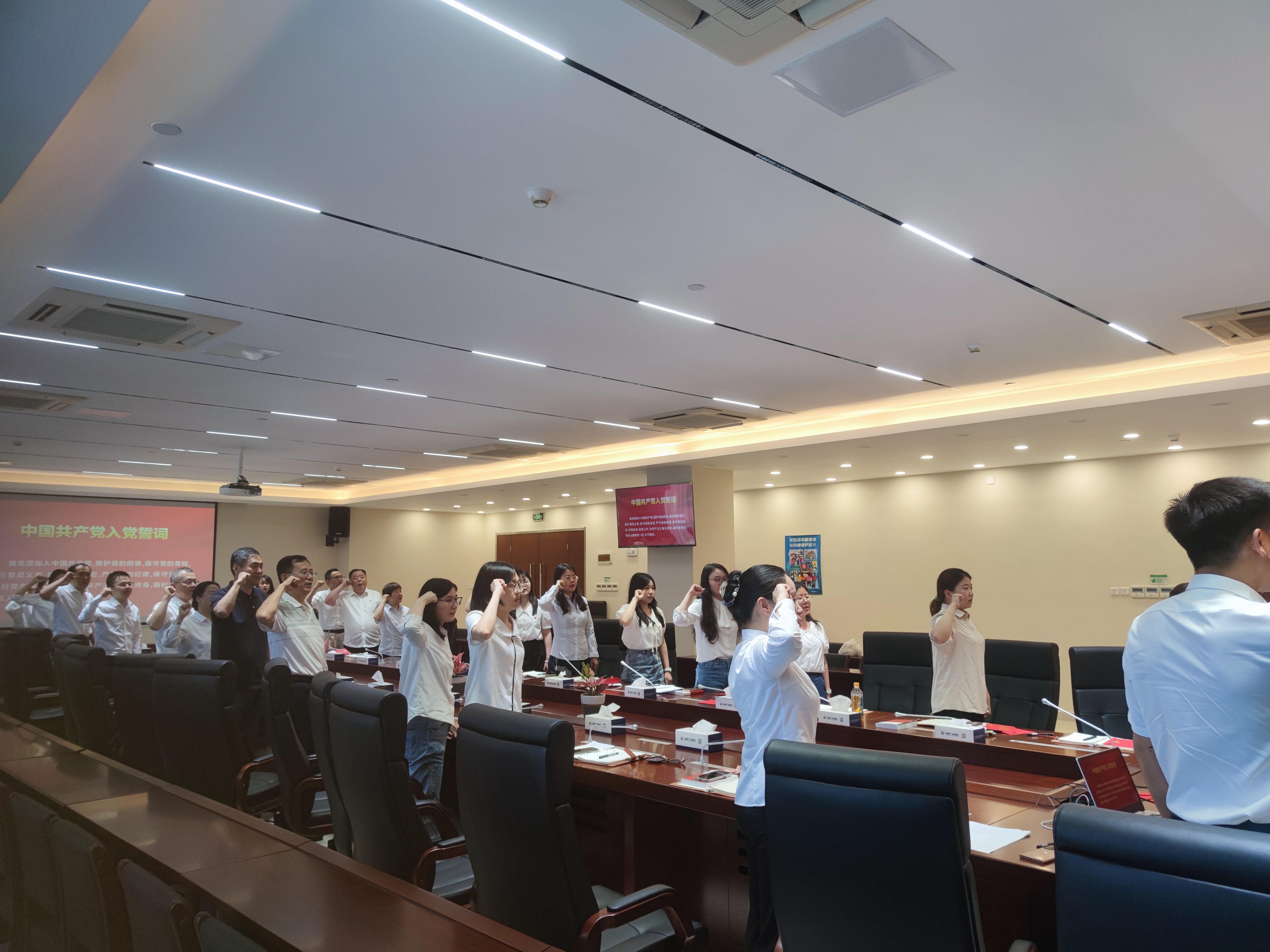 “我志愿加入中国共产党,拥护党的纲领,遵守党的章程,履行党员义务,执行党的决定,严守党的纪律,保守党的秘密,对党忠诚,积极工作,为共产主义奋斗终身,随时准备为党和人民牺牲一切,永不叛党。”全体党员一起面对鲜红的党旗,再次庄严宣誓,一字一句、铮铮誓言,体现了党员同志们对党的无限忠诚,更加坚定了入党使命和奋斗初心。