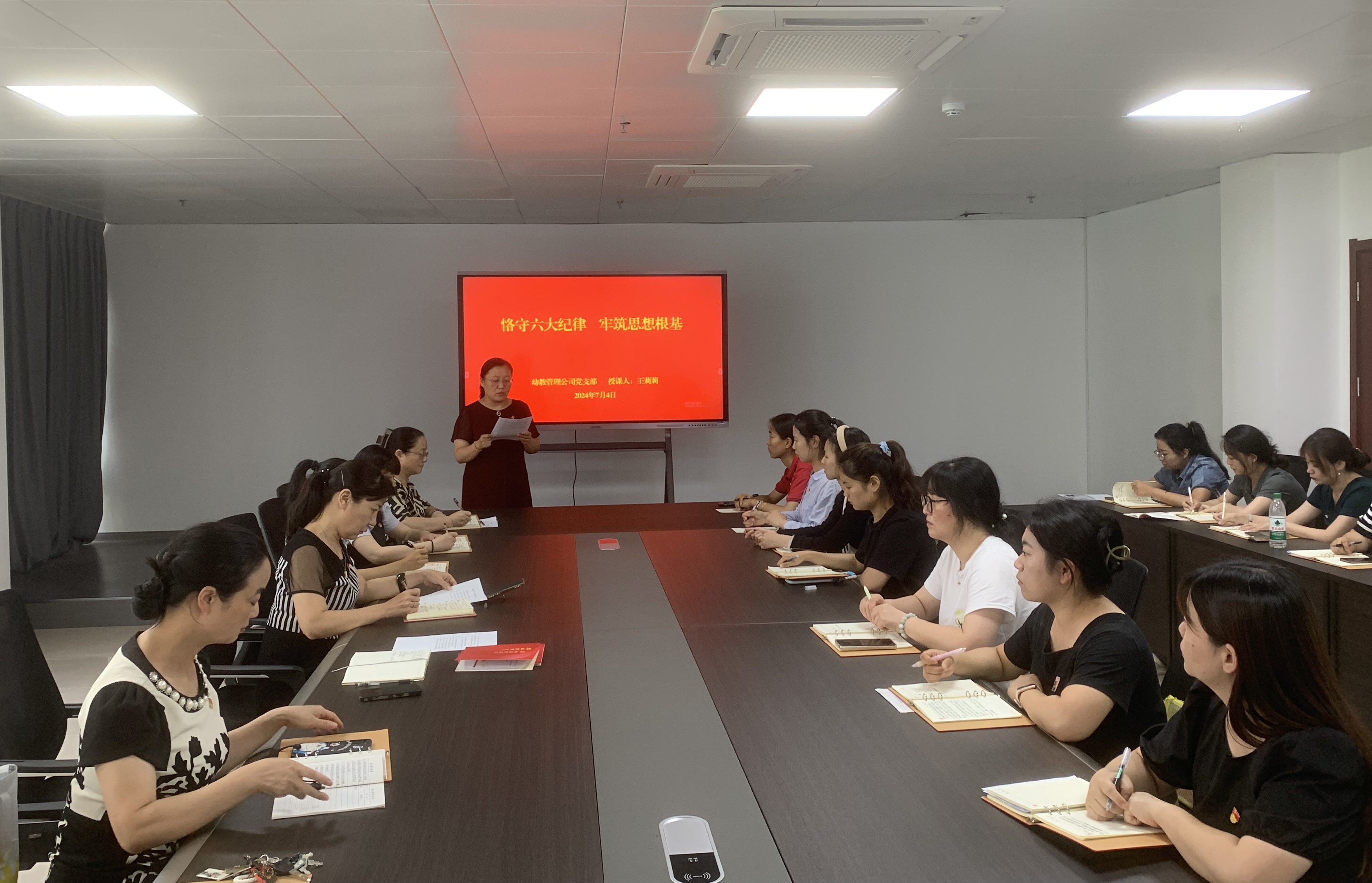 7月4日,幼教公司党支部书记王莉莉同志以《恪守六大纪律 筑牢思想根基》为题,为全体党员讲授专题党课。要求全体党员党纪学习教育要注重融入日常、抓在经常,原原本本学,坚持个人自学与集中学习相结合,紧扣党的政治纪律、组织纪律、廉洁纪律、群众纪律、工作纪律、生活纪律,推动《条例》入脑入心。