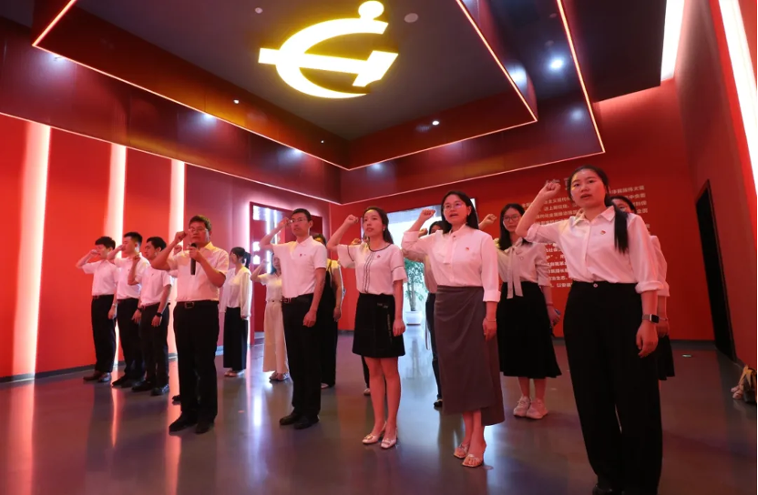 参观尾声,全体党员在鲜艳的党旗下庄严宣誓,重温入党誓词,集体过政治生日。这一神圣时刻不仅是初心回望,更是使命担当,让每位党员的心灵经历了一场深刻的思想洗礼和党性锤炼。大家纷纷表示,要时刻保持清醒头脑,筑牢拒腐防变的“思想、道德、纪律”防线,自觉做好廉洁自律的表率。