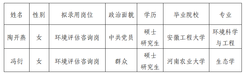 根据《合肥市产业投资控股(集团)有限公司员工招聘管理办法》和《合肥市斯康环境科技咨询有限公2024年度员工招聘公告》,经公开报名和资格初审、笔试、面试、体检、背调等程序,确定下列拟录用人员,现公示如下: