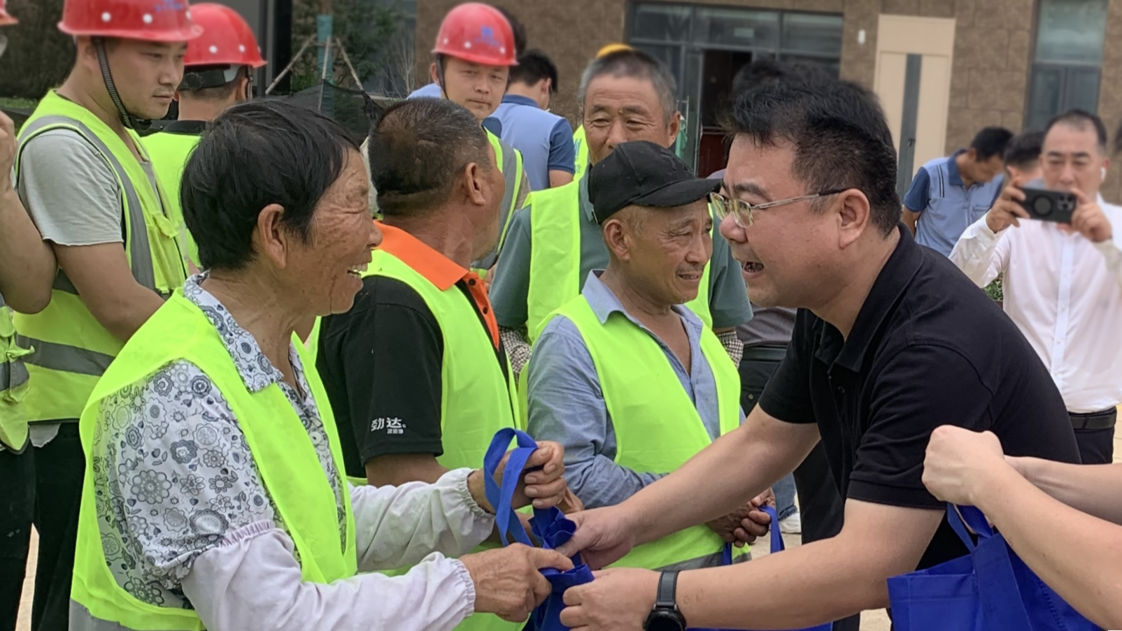 幸福庄园·北城健康养生园项目目前长者公寓已验收完成,目前正在开展室外景观工程、智能化设施安装施工,户外工作依然重要而紧张。此次活动慰问从事项目一线建筑、保洁、绿化、安保等户外劳动者等共50余人,为他们带去夏季降暑防护物资和关怀慰问。此外,工会为劳动者们宣讲防暑知识,悬挂宣传横幅,张贴宣传海报以及普及防暑降温相关法律法规等,引导做好防暑降温措施,保障职工权益。