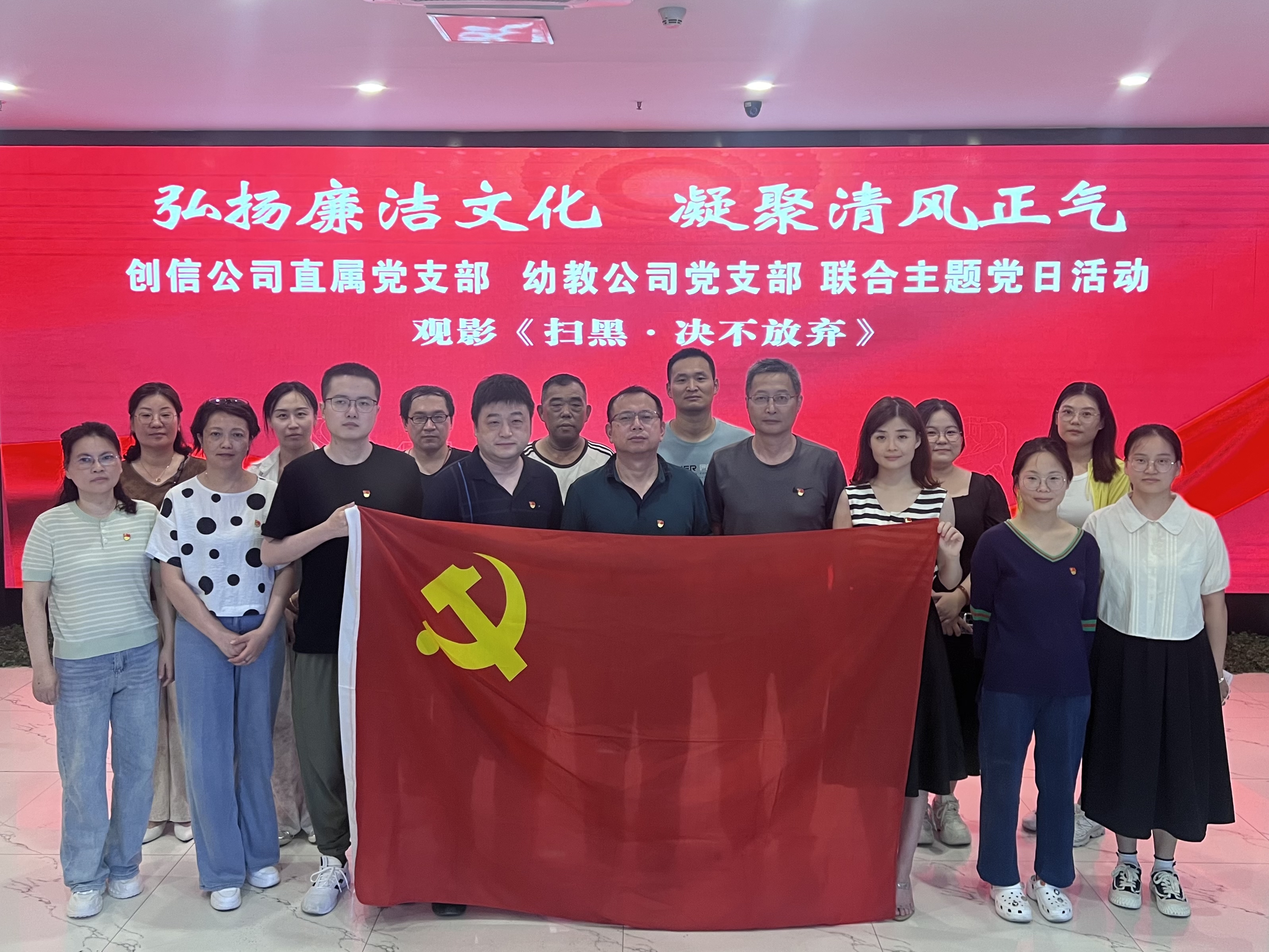 为庆祝中国共产党成立103周年,持续推进党纪学习教育走深走实,7月19日,创信公司直属党支部与幼教公司党支部联合开展“弘扬廉洁文化 凝聚清风正气”主题党日活动,前往kaiyun开云官方旗下“清风影院”观影《扫黑·决不放弃》,增强全体党员纪律意识,筑牢思想防线。公司党员干部、入党积极分子共计30余人参加活动。