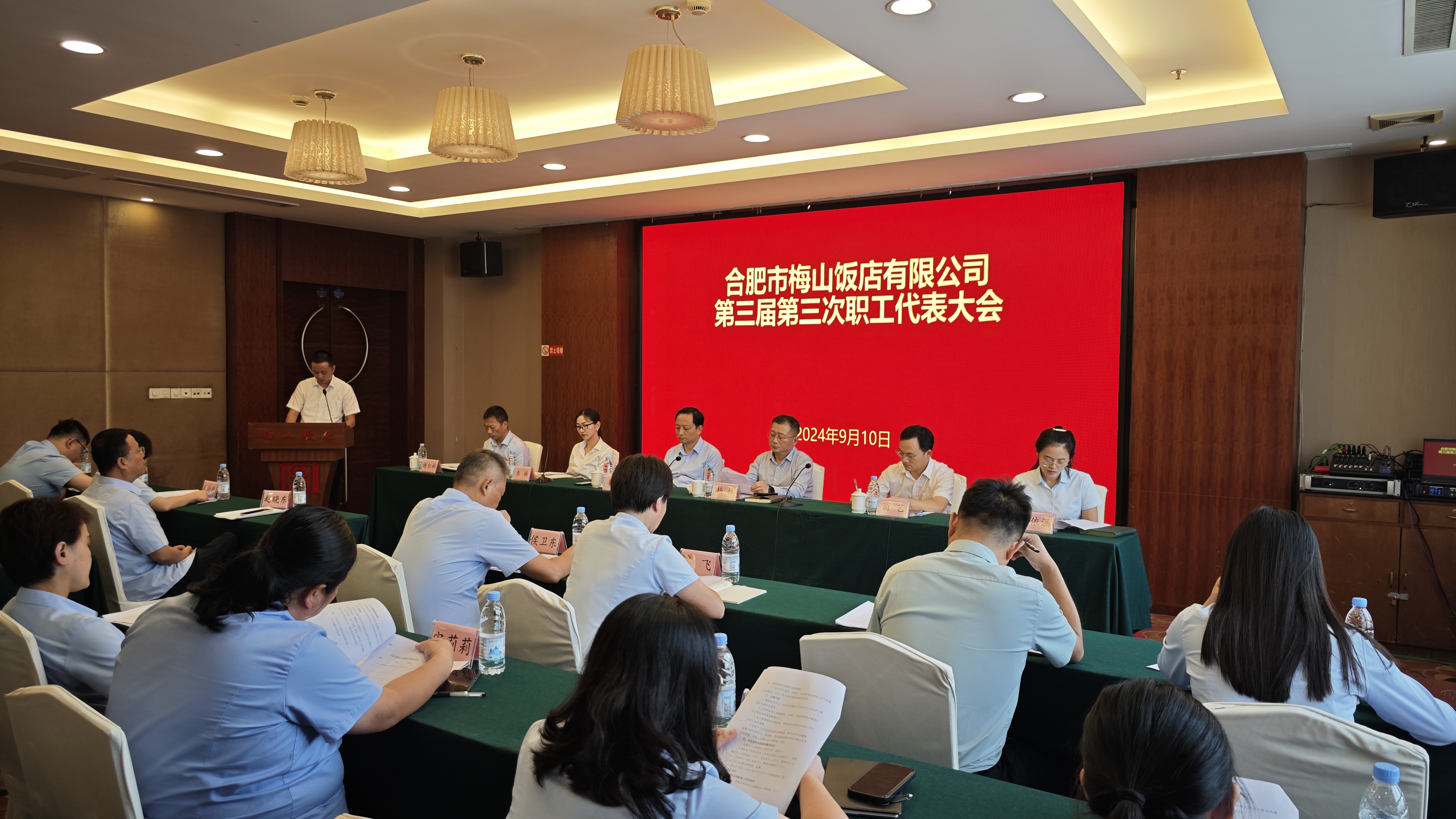 9月10日,梅山饭店召开三届三次职工代表大会。公司领导班子成员出席会议,公司33名职工代表参加了会议,相关部门及子公司主要负责人、统战对象列席会议。