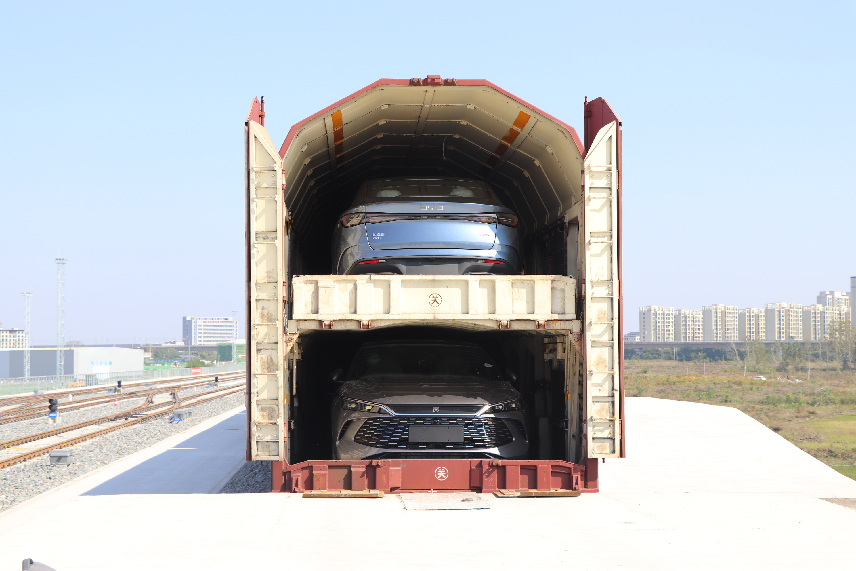 十月金秋,硕果累累。在全市上下深入学习宣传贯彻习近平总书记考察安徽重要讲话精神之际,10月23日上午,合肥下塘新能源汽车城铁路综合物流基地举行专线揭幕发车活动,装载有290辆比亚迪新能源汽车的铁路笼车,缓缓从下塘集铁路专用线驶出,发往广州国际港站,进一步服务全省首位产业发展。