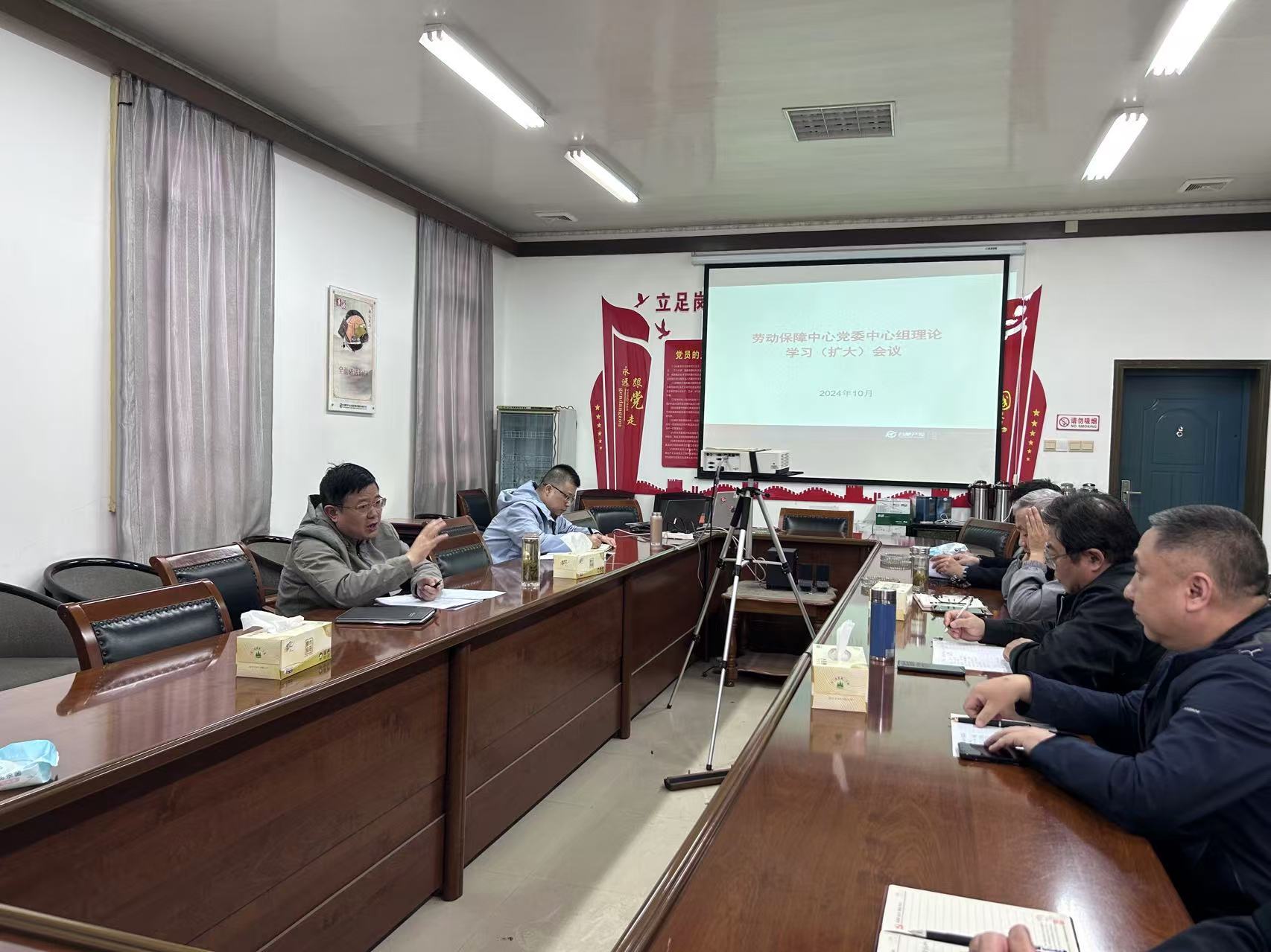 10月22日,劳动保障中心召开10月份党委中心组理论(扩大)学习会议。劳动保障中心党委班子成员、部门负责人及支部书记参加会议。
