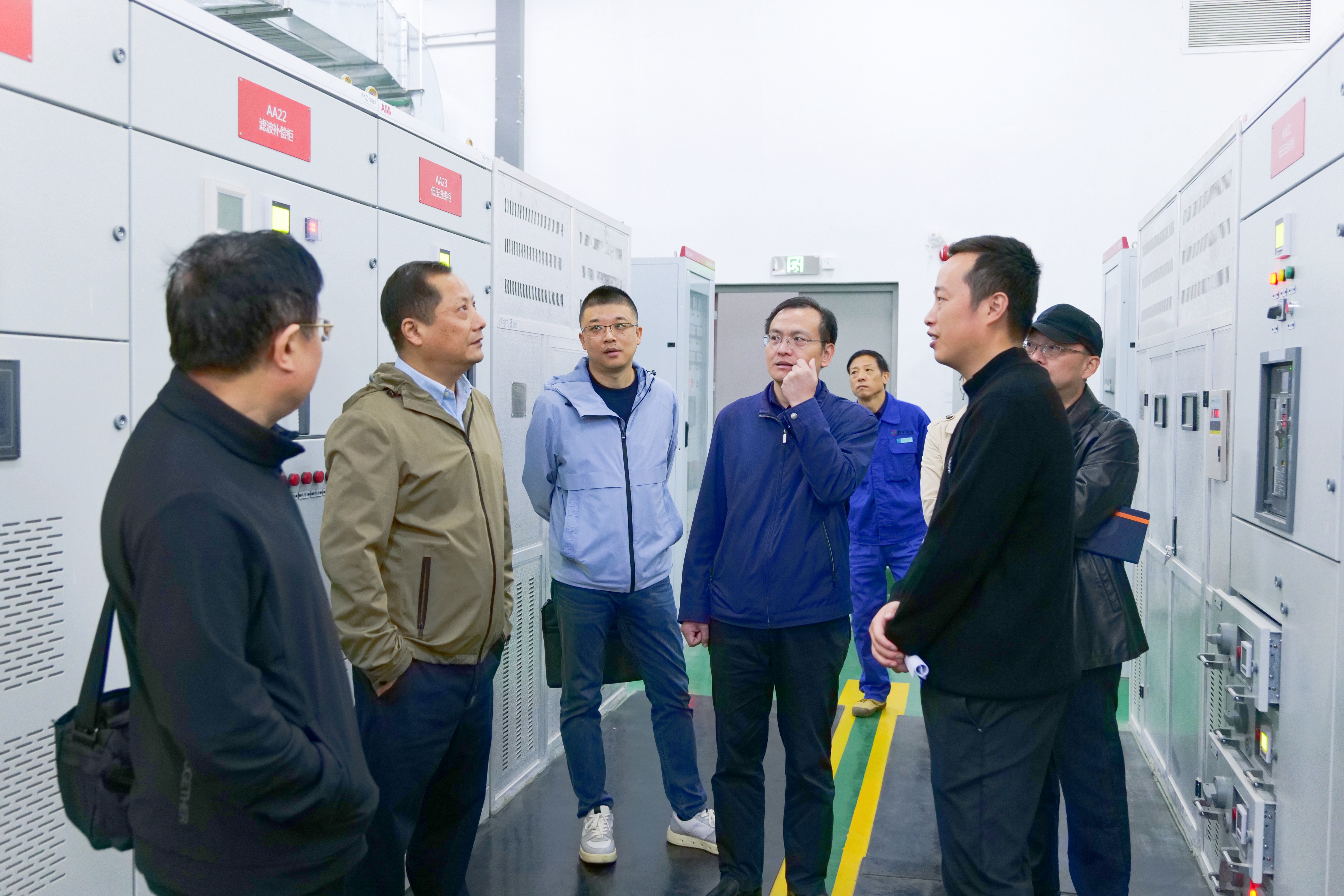 罗志明一行先后来到创新院展厅、消防控制室、配电房等地,仔细检查了消防设施、灭火系统、紧急出口和疏散指示标识、监控摄像头和报警系统等配套安全防护设施。参观过程中,罗志明向安全管理人员详细询问了日常巡检、安全隐患排查等工作情况,并勉励大家要居安思危,时刻紧绷安全之弦,牢牢守住安全底线。