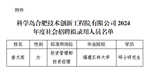 附件:科学岛合肥技术创新工程院有限公司2024年度社会招聘拟录用人员名单