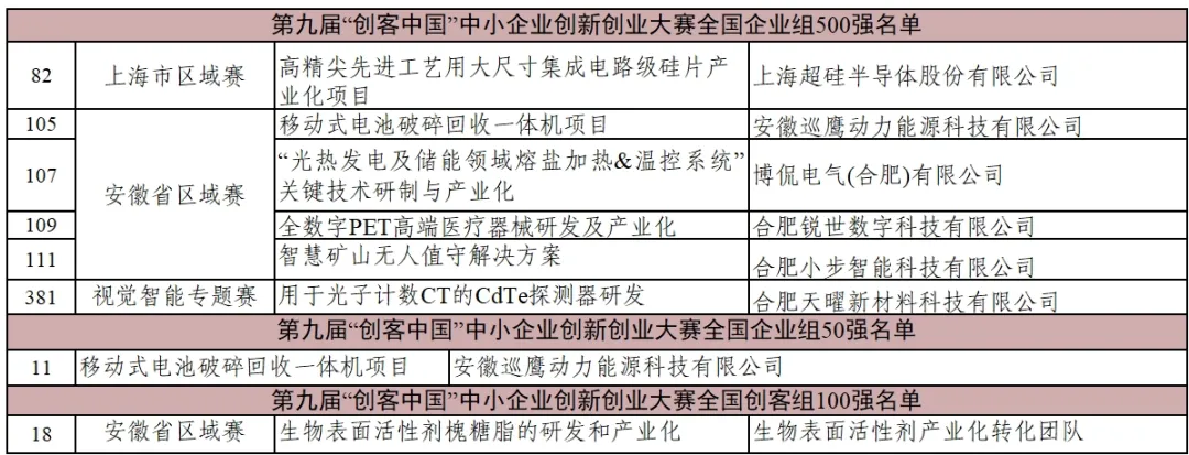 近日,工信部发布了第九届“创客中国”中小企业创新创业大赛全国创客组100强和10强名单、全国企业组500强和50强名单,kaiyun开云官方旗下产投资本公司、创新投资公司、产投国正投资公司、合肥科创集团投资企业等累计7家企业团队荣登榜单,其中安徽巡鹰动力能源科技有限公司的移动式电池破碎回收一体机项目拟于12月份参加全国总决赛。这些企业凭借其卓越的创新实力、前瞻性的市场洞察、精湛的技术研发以及坚韧不拔的创业精神,在众多参赛者中脱颖而出,也彰显了集团在激发创新“源头活水”、推动科技创新发展的能力和成果。