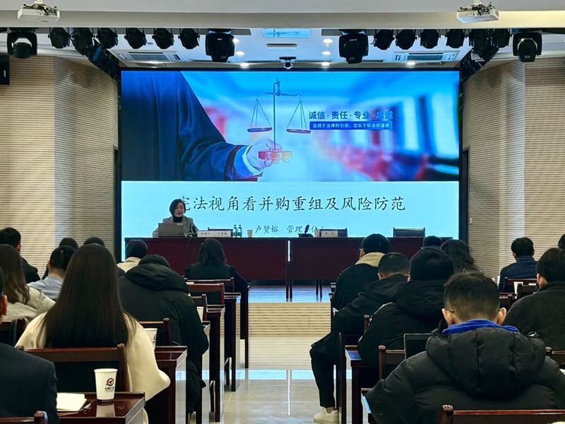 此次培训特别邀请了安徽天禾律师事务所管理合伙人律师卢贤榕进行专业讲解。培训中,卢律师从宪法和新发展理念切入,围绕并购重组这一复杂且关键的业务领域,深入剖析了其中涉及的各类法律问题。从当前并购市场的新特点,到收购上市公司控制权的各类方式,再到上市公司并购重组的概念、类型及关注要点,卢律师凭借丰富的实践经验与深厚的法律专业知识,通过详实的案例分析和深入浅出的讲解,使参训人员对并购重组法律事务有了更为系统、全面且清晰的认识。