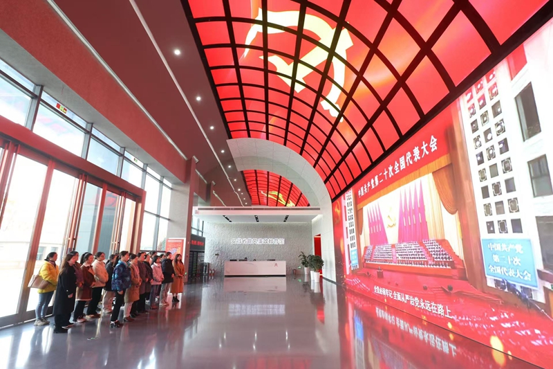在讲解员的引领下,大家依次参观了“纪律立党·从严治党”“廉润江淮·清风扬帆”“以案为鉴·警钟长鸣”“不忘初心·永葆清廉”四个展厅。一幅幅图片、一个个案例、一份份忏悔书,给在场的党员们上了一堂触及灵魂的反腐倡廉警示教育课。参观结束后,全体党员在支部书记王莉莉的带领下,面向党旗,重温入党誓词,牢记入党初心,以铿锵有力的誓言表达为党奋斗的决心。