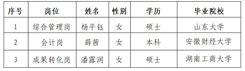 根据《合肥市科创集团有限公司及其所属子公司2024下半年社会招聘公告》的规定,经线上测评、笔试、面试、体检、背调等程序,现将拟录用人员名单进行公示,公示时间:2024年12月23日至2024年12月27日,共5个工作日。